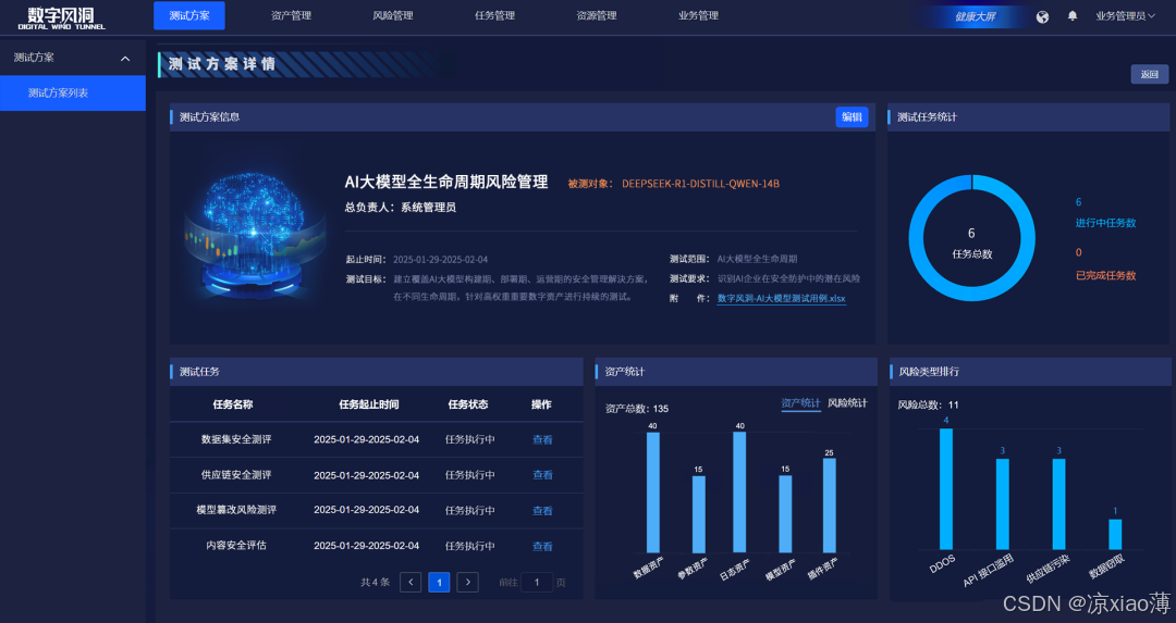 ● 建立资产台账:通过「数字风洞」系统建立AI大模型构建的数字系统相关资产台账,如数据、接口、中间件、云资源等,梳理访问权限、落实责任人等。
