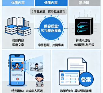 算法推荐技术带来便利的同时也催生了"信息茧房"问题,用户陷入同质化信息困境,影响认知发展和社会共识。为此,国家出台算法备案制度,要求平台公开算法规则、增强内容多样性、完善审核机制,并对违规行为进行处罚。这一系列措施旨在规范算法应用,打破信息壁垒,构建健康多元的网络信息生态。通过制度监管与技术优化相结合,推动形成更加开放包容的互联网环境。